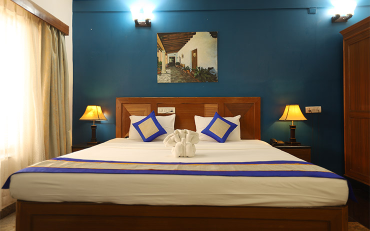 Bay Treasure sprawls across 1.15 acres of pure luxury with 24 super deluxe and deluxe budget friendly rooms with sea view, with very close proximity to the beach. It has an exclusive sports lounge for you to relax and enjoy a few rounds of sporting activity with your friends and family. All rooms are equipped with modern day amenities, Satellite TV and Internet connectivity. Spacious parking space for cars and buses with airport pick up and drop facility makes for a stress free stay. All paintings at the resort are hand created and are for sale. We also take orders for paintings. For queries email to reachus@baytreasure.in